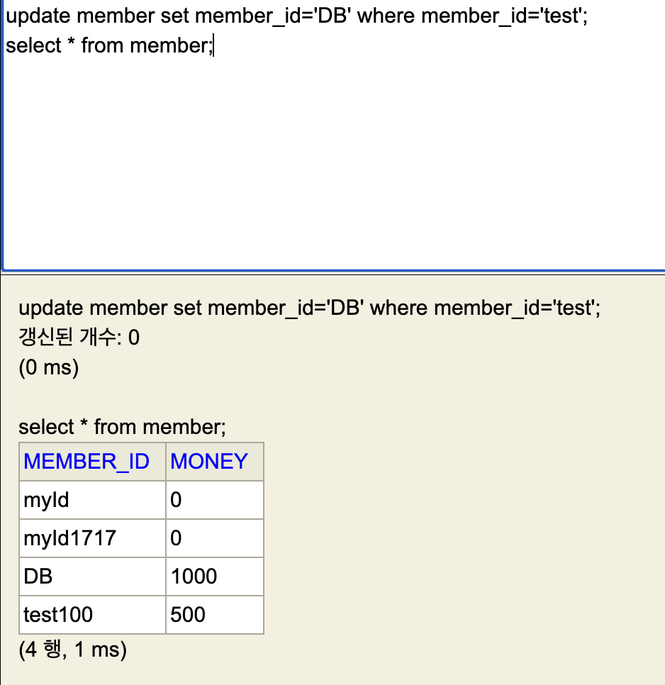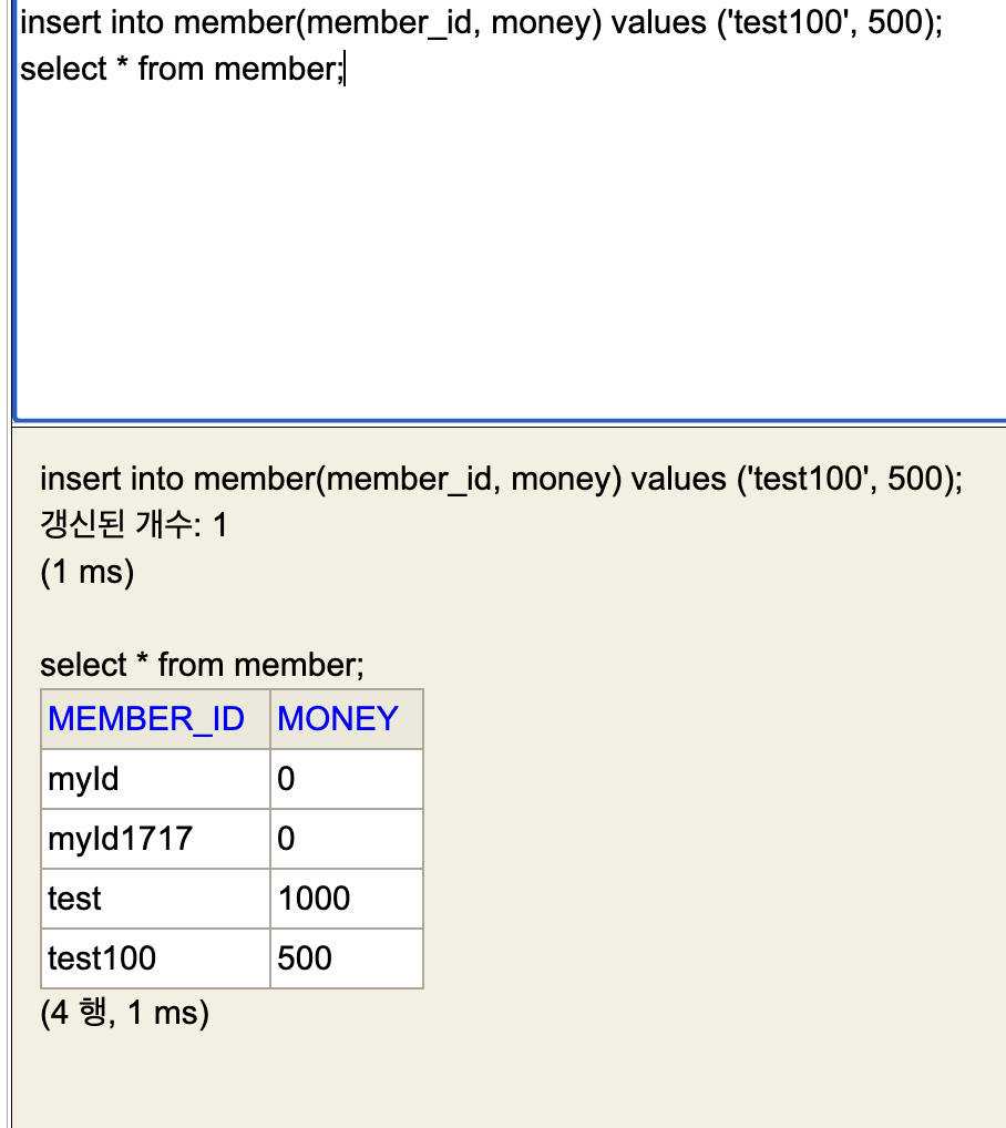 insert into member values(1, 1000);