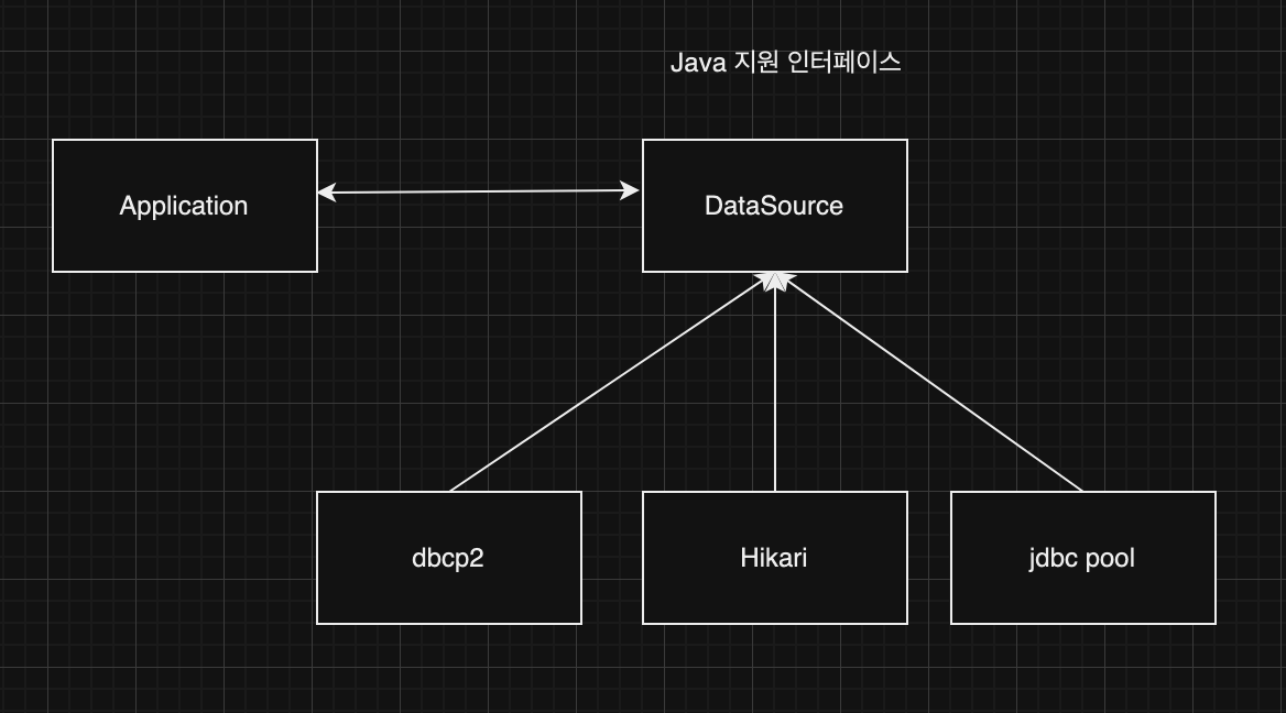 - DataSource 인터페이스를 통해서, 오픈소스를 이용하여 Connection Pool을 이용할 수 있음